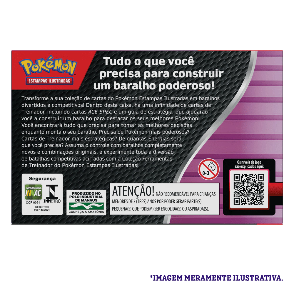 Tudo o que você precisa para construir um baralho poderoso! Transforme a sua coleção de cartas do Pokémon Estampas Ilustradas em baralhos divertidos e competitivos! Dentro desta caixa, há uma infinidade de cartas de Treinador, incluindo cartas ACE SPEC e um guia de estratégia, que ajudará você a construir um baralho para destacar os seus melhores Pokémon! Você encontrará tudo que precisa para tomar as melhores decisões enquanto monta o seu baralho. Precisa de Pokémon mais poderosos? Cartas de Treinador mais estratégicas? De quantas Energias será que você precisa? Assuma o controle com baralhos completamente novos e combinações originais, e experimente toda a diversão de batalhas competitivas acirradas com a Coleção Ferramentas de Treinador do Pokémon Estampas Ilustradas!